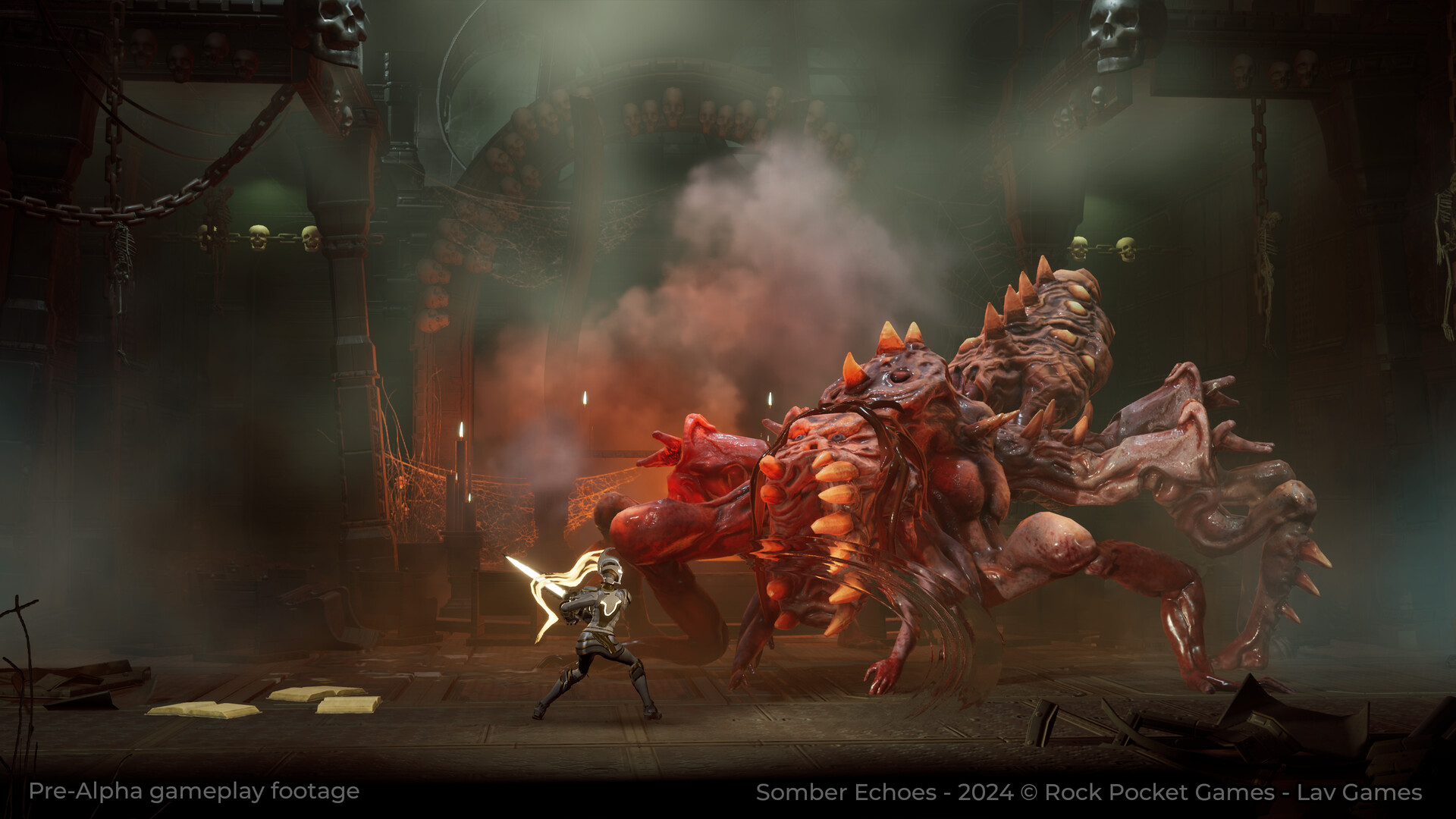 《沉寂回响》是一款融合了古希腊神话的黑暗奇幻“银河恶魔城”游戏。在浩瀚的宇宙中,玩家扮演女主角阿德雷西亚,阻止双胞胎妹妹哈莫尼亚摧毁宇宙。游戏充满谜题与战斗,玩家必须在充满恐怖的飞船中穿行,揭开隐藏在灾难背后的秘密。