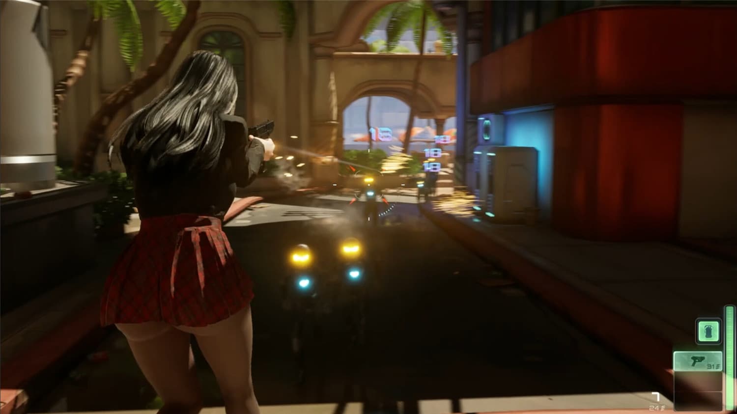 AI机器人对人类发起了攻击,勇敢的少女们拿起武器守卫防线,为了人类!— 小型快节奏单机FPS游戏,有对战模式和僵尸模式,10分钟一局,多种人物服装可选择。