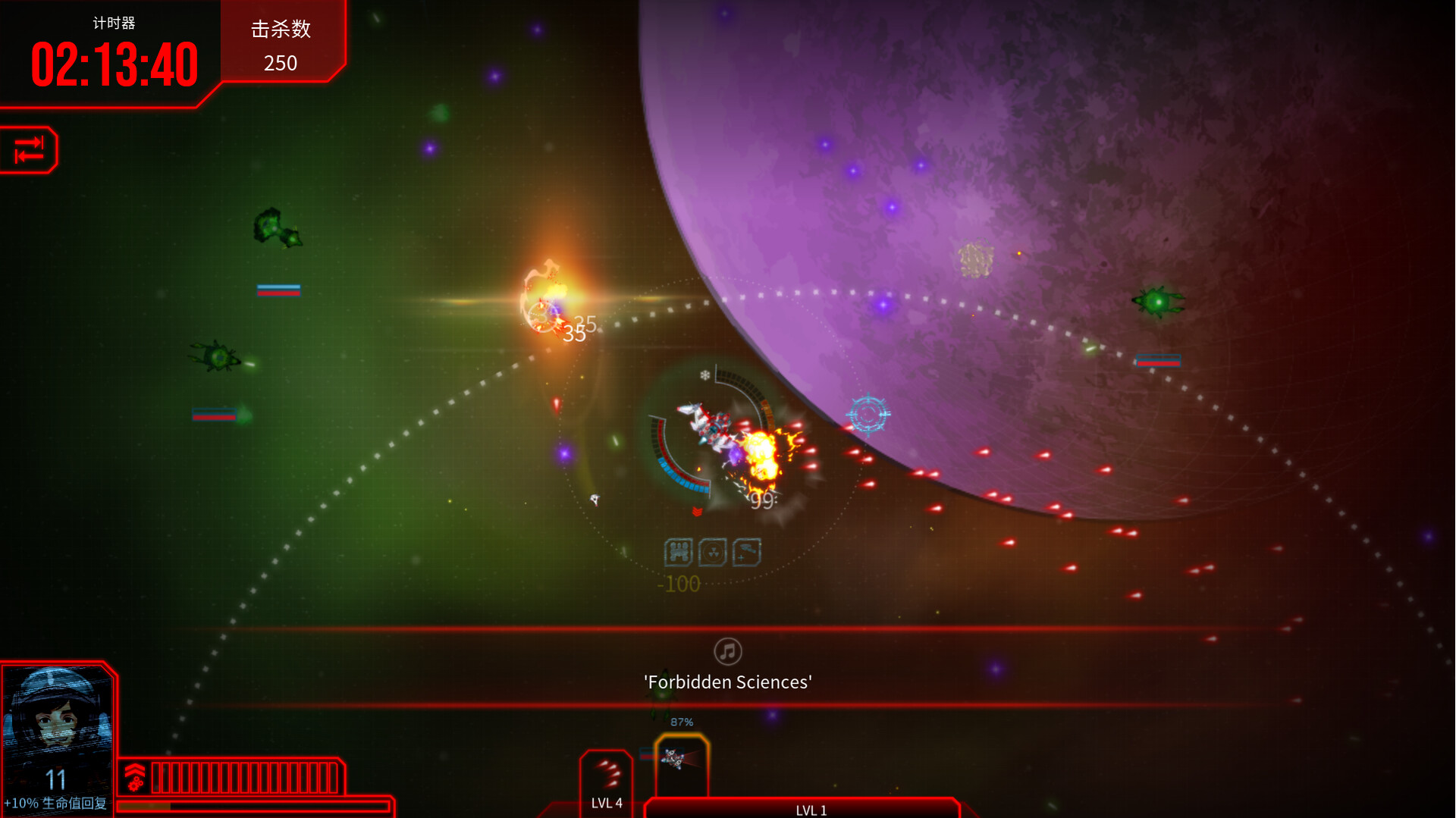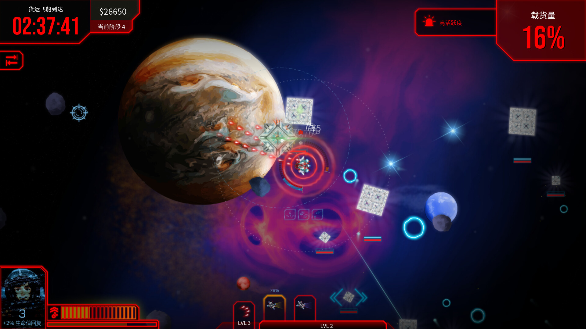 战斗!升级!成为最后的幸存者! 《深空幸存者》是一款来自阿根廷的独立游戏,并具有roguelite元素。你将驾驶着自己的战机在太空之中遨游并收集资源。敌人将从四面八方袭来,尽可能躲避敌人的攻击,在一次次升级选择中让你的战机越变越强,直至击败最终boss,获得胜利!