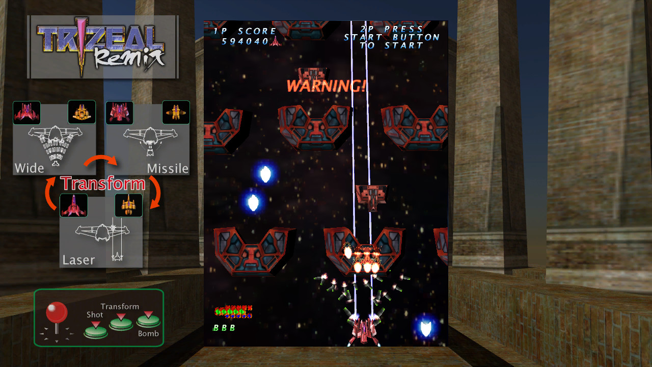 2004年开始在电玩中心登场的射击游戏的Remix版。 通过在扇形弹、激光及导弹等3种形态之间变形,即可针对不同能力加以强化, 为“最爱射击”系列的元祖王道射击游戏。 强化机体威力,勇敢奋斗向前进! 按不同概念制作的多风格关卡组合,共有6个关卡。