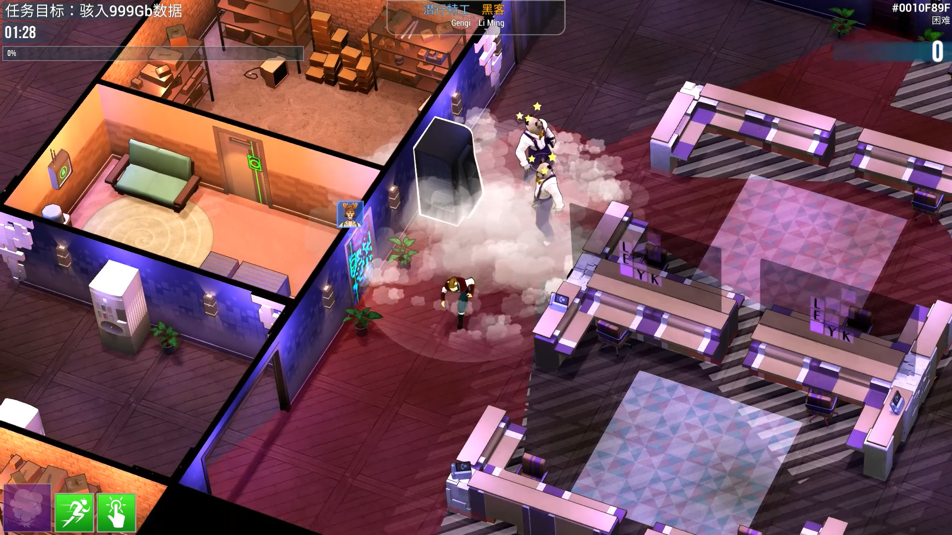 《Hacktag》是一款快节奏的双人合作潜入游戏,设有独特的不对称游戏玩法。扮演实地操作的潜行特工或虚拟潜入的黑客角色,并合作完成意外百出的间谍任务!