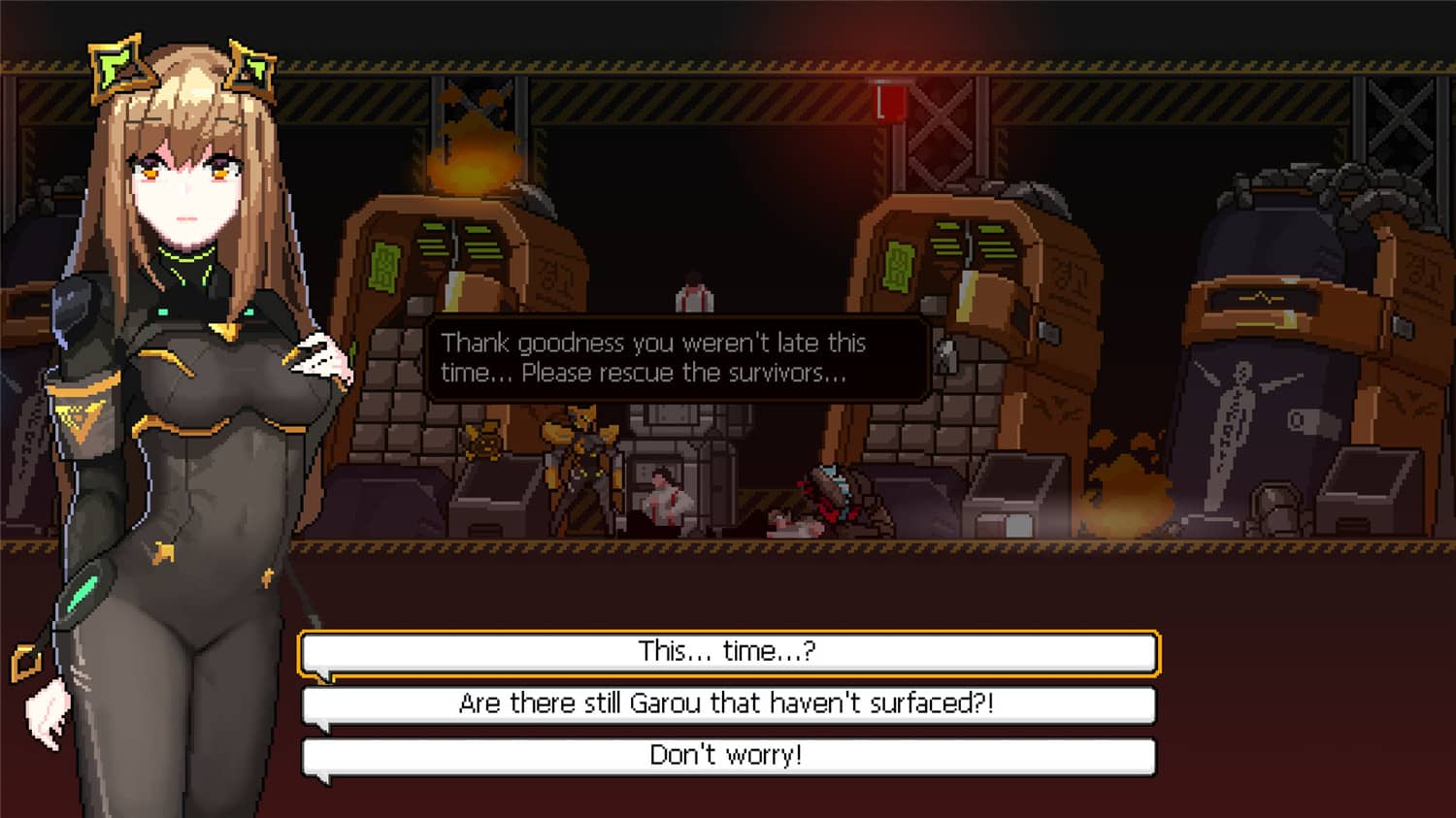 《金属战士》是一款像素风格的Roguelite横版动作冒险游戏。在游戏中你将扮演Joanna,你作为人类为数不多的幸存者将要走向解放人类的旅途,你需要面对成群的外星机器人以及向你那背叛人类的姐姐复仇。